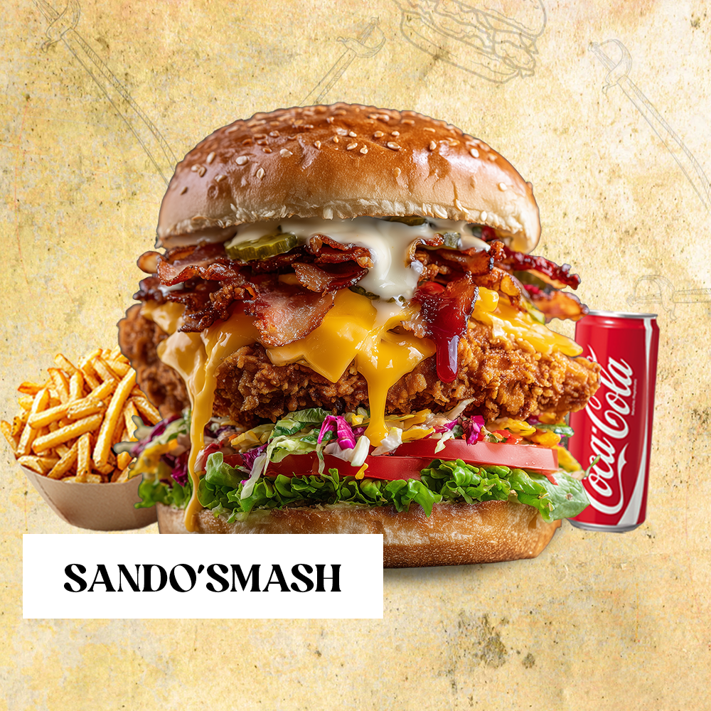 Pain burger moelleux, poulet crispy fait maison, chou mariné, cheddar, bacon, salade, tomates, cornichons croquants, sauce burger